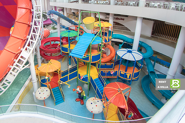اپارک دارای امکانات متنوعی از جمله لیست طولانی از اسلایدهای آبی با ارتفاعات مختلف، استخرهای موج، استخرهای آبی، مناطق تفریحی برای کودکان و نوجوانان، مناطق نشیمن و استراحت، و فضاهای سبز است. همچنین این پارک دارای رستورانها و فروشگاههای مختلفی است که میتوانند نیازهای تغذیهای و سایر نیازهای بازدیدکنندگان را تامین کنند.
